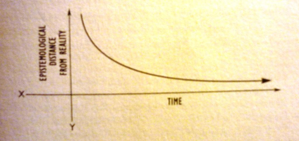 IF the x-axis measures the passage of time and the y-axis measures how far our understanding is removed from the reality of the thing itself, THEN over a period of time “the knower gets closer and closer to the reality, though without ever touching the line that would mark perfect knowledge: we will never be omniscient.” (DA Carson, Becoming Conversant with the Emerging Church, Zondervan, 2005) 119-20). The search for truth is asymptotic – over time we can get closer and closer to the horizontal, without ever touching it. And our knowledge can be true, truly true, without it ever being exhaustive or omniscient.