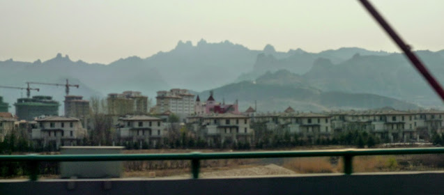 There was the thrill of driving over the longest bridge in the world. It never touches land. It takes 25min to cross – and it would cover the English Channel with some kilometers to spare. There was even a spaghetti junction in the middle of the ocean. Meanwhile, over on terra firma, a quick shot from the car captures the razor edges of the mountain ridges that took me back to sketches in the biographies I read as a child.