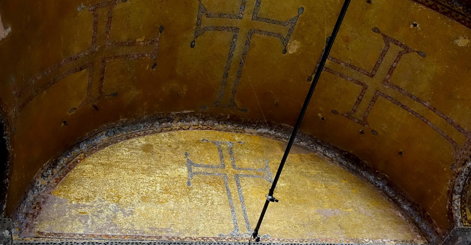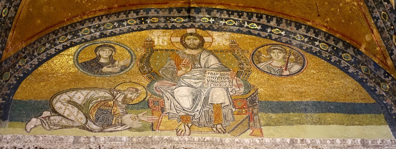 Here is the irony. While images of the cross have been defaced, every tour group enters the building at the Imperial Gate, crowned with its own mosaic. It is an image of Jesus, flanked by Mary and Gabriel, with the emperor prostrate at His feet. Jesus is holding a book with an inscription which is dutifully translated by every tour guide to proclaim, simply and clearly, the message of the cross in the language of every visitor: