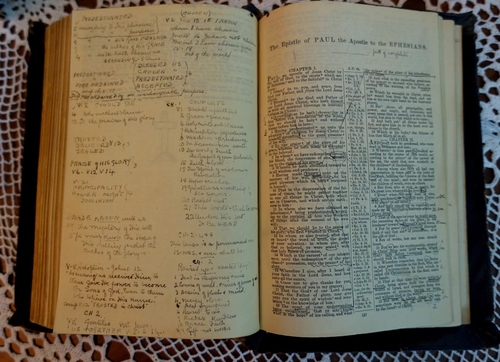 PS: I have Alexander McLaren’s personal Bible. Seriously. He gave it to a missionary from his church who went to work in India. When that missionary retired he gave it to his pastor in India, my father-in-law … who then gave it to me. Every second page is blank so that he could write his own notes. Here are the twin pages from the start of Ephesians.