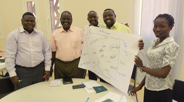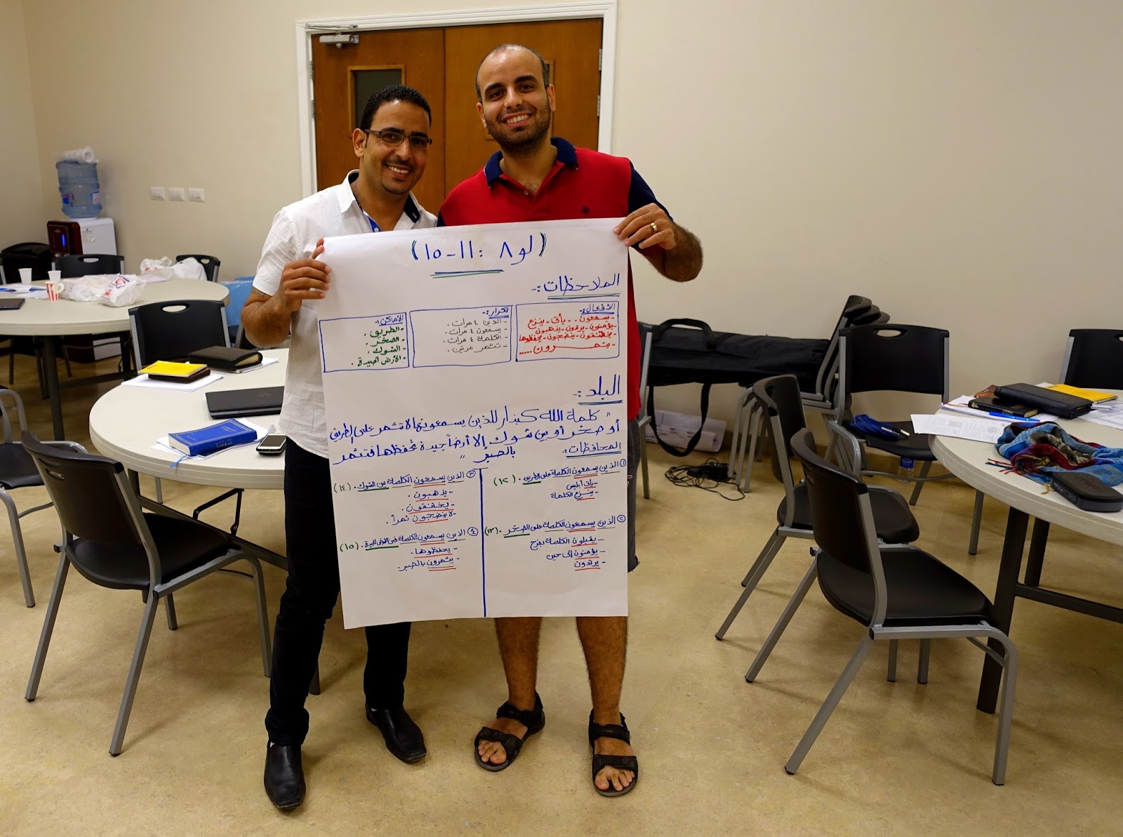 Through the afternoon on that Day Three, they had an opportunity to have a go themselves, preparing sermon outlines on Colossians 1.28-29. Still no notes (although I urged them to read through them on their own and bring back their questions). Then, through the afternoon on Day Four, they had another opportunity to practise the process, this time with Luke 8.11-15. As the translator worked through their sheets with me, I was delighted. Rarely have I seen such an accurate grasp of the basic idea after just the second effort. Still no notes. This is the work they produced (for those of you who know Arabic, not too many, I suspect!):
