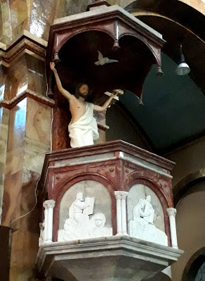 Our conversation about art and preaching moved into a more cheerful space from this point, particularly when they shared about their visit to Cuenca (Ecuador) the previous week. Jorge’s brother had been the parish priest at this Catholic church in Baños for many years. Take a look at its pulpit…