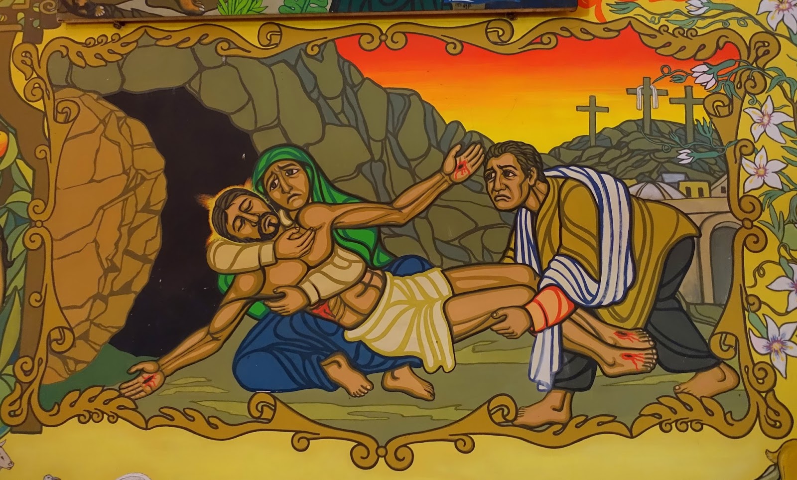 The story of Jesus – and a number of Old Testament scenes as well – covered the walls.