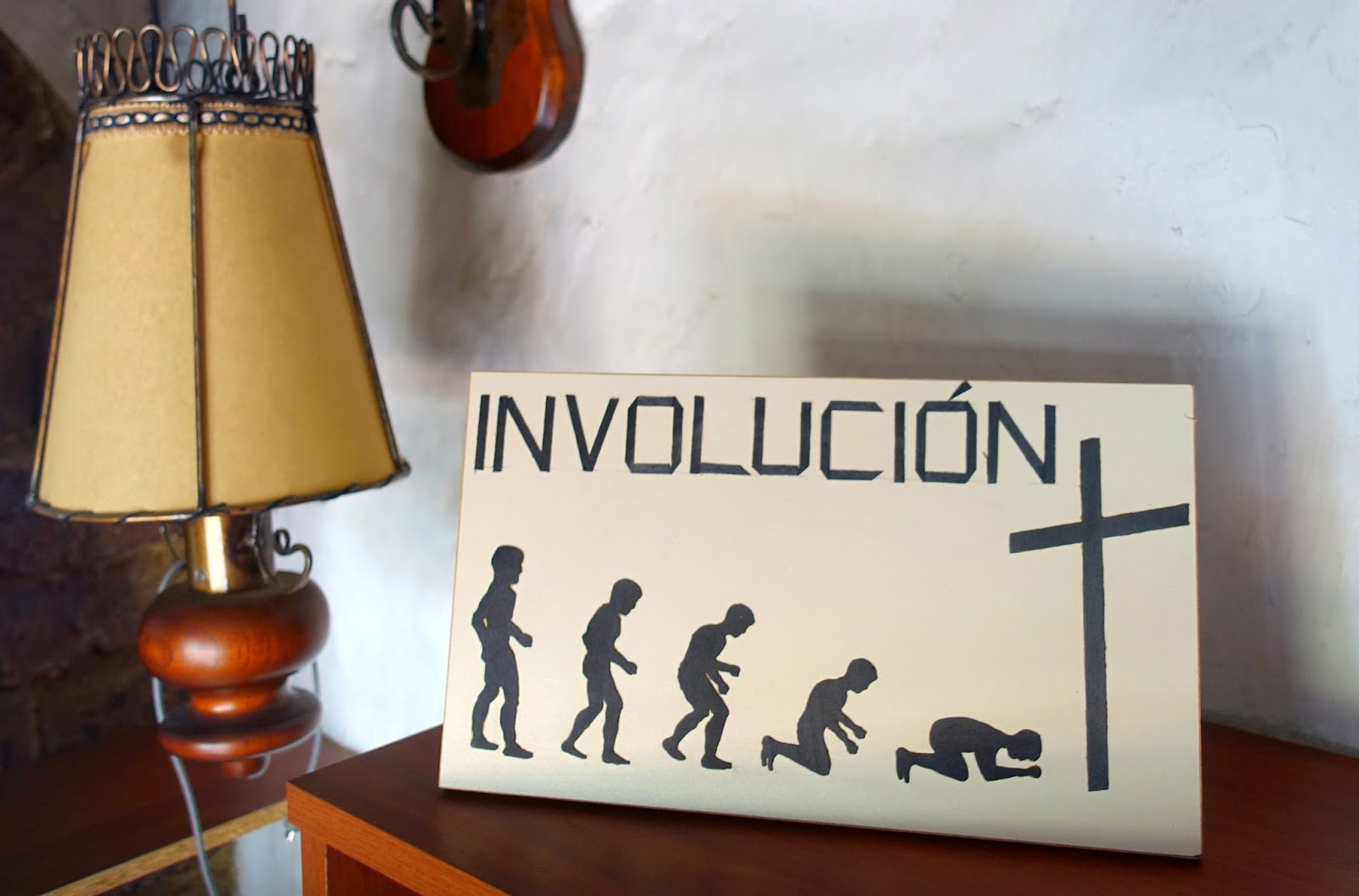 This is an equally true representation of the preacher, with the risen Jesus behind and the hovering Spirit above, reminding us that the earlier image of vulnerability and humility is the very one that is to be empowered by Christ and His Spirit. What a calling! This can happen in any vocation as we commit to a journey – a journey captured by an image in Jorge’s study. Playing on the evolution idea of the ape morphing into the human, it is called (in Spanish) ‘involution’. It speaks of the long journey of submission to the Christ of the cross.