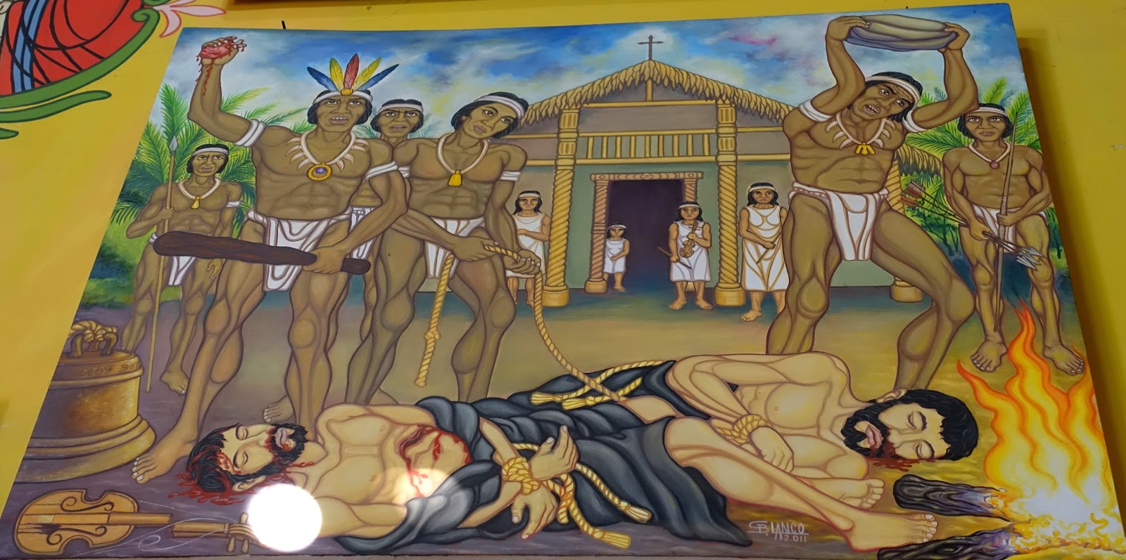 Our conversation about art and preaching moved into a more cheerful space from this point, particularly when they shared about their visit to Cuenca (Ecuador) the previous week. Jorge’s brother had been the parish priest at this Catholic church in Baños for many years. Take a look at its pulpit…