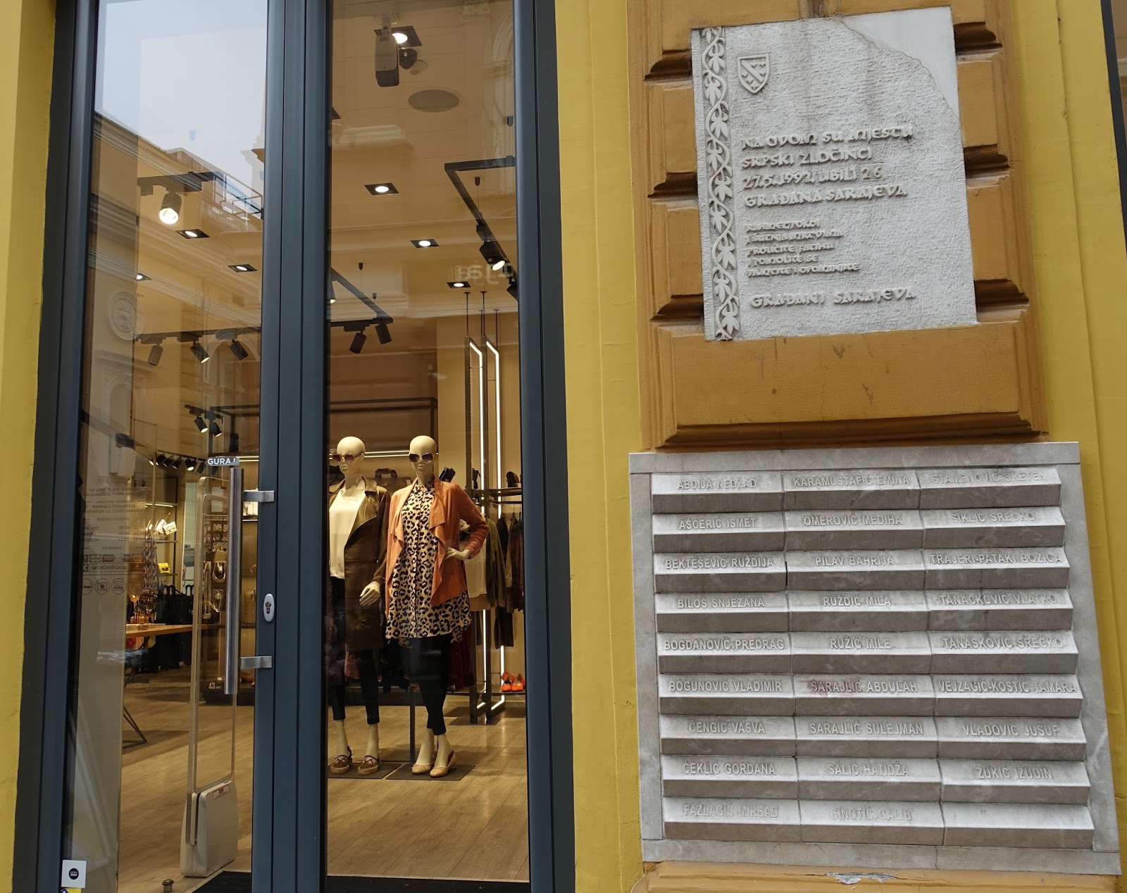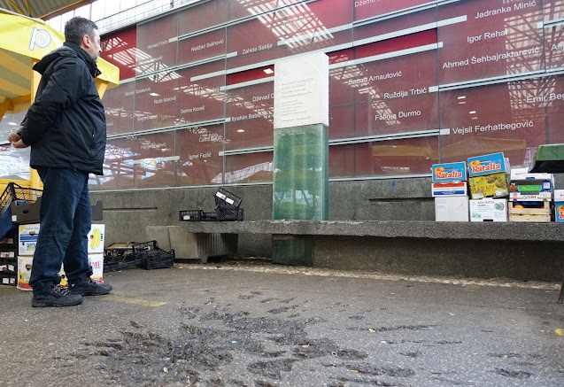 Often nearby a Sarajevo Rose, on the walls of a building, there is a list of the names of the people who died at that spot.