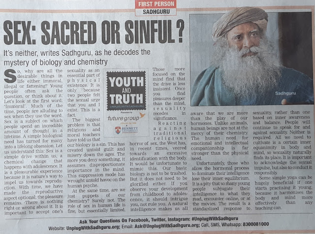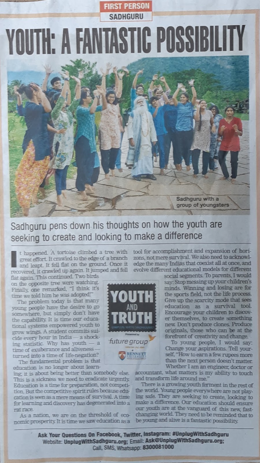 On a weekly basis (I think) Sadhguru has contributed an article in a ‘First Person’ column.
