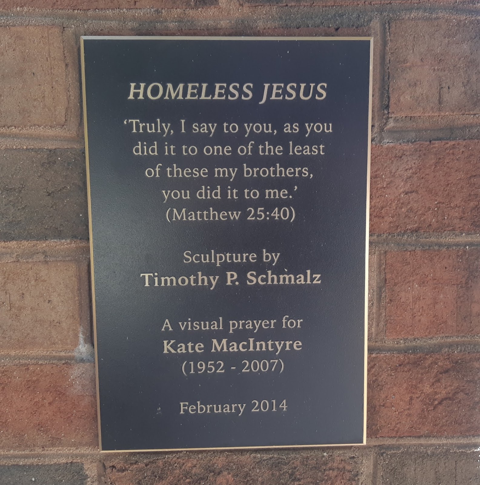 … but that was eclipsed quickly by seeing the one without a home. Asleep on a bench, outside the St Albans Church in nearby Davidson, we found The Homeless Jesus.