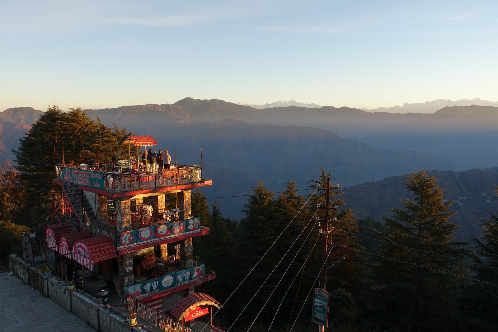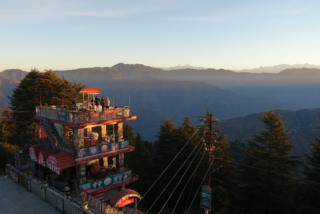 | LANDOUR, UTTARAKHAND: Perched atop a three-storied tea-shop to watch the sunrise over the Himalayas. Neither the owner (arriving later), or the local monkey, were too pleased that we had helped ourselves to the view. |