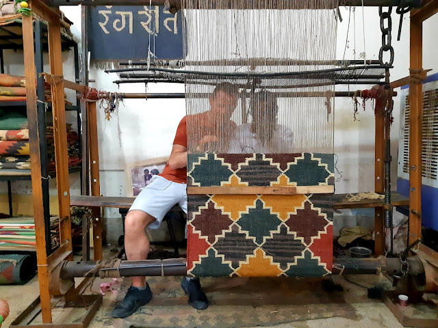 | JAIPUR, RAJASTHAN: Graham trying his hand at carpet-making, while avoiding the cannabis with which his mentor reeked – or, so he claims :). |