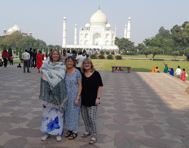 | AGRA, UTTAR PRADESH: Three women at the Taj. |