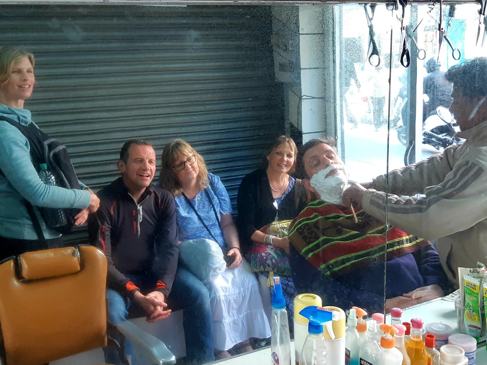 | LANDOUR BAZAAR, UTTARAKHAND: A (very) close, wet shave for Andy in the bazaar. |