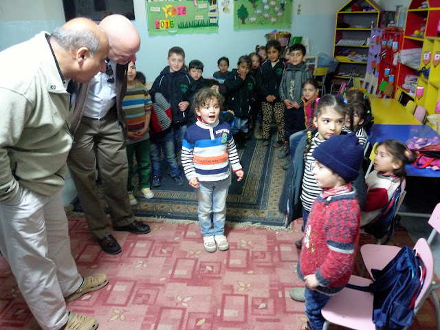 | Riad and David, leaders of organisations engaged with training tens of thousands of people around the world every year, lean in to hear a little Syrian refugee sing a gospel song – in Zahle, Lebanon. |