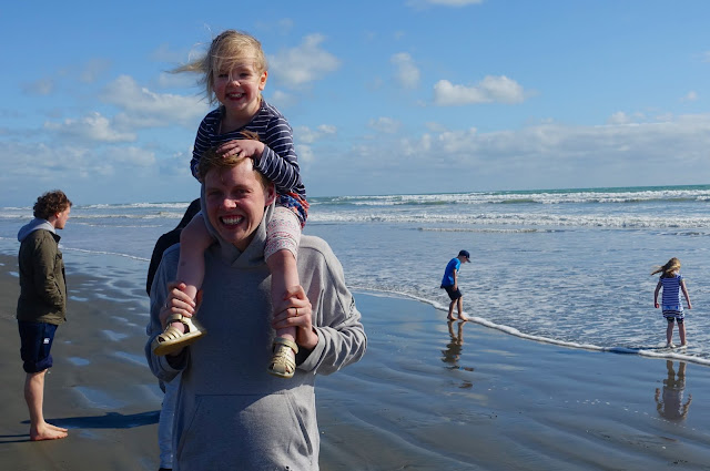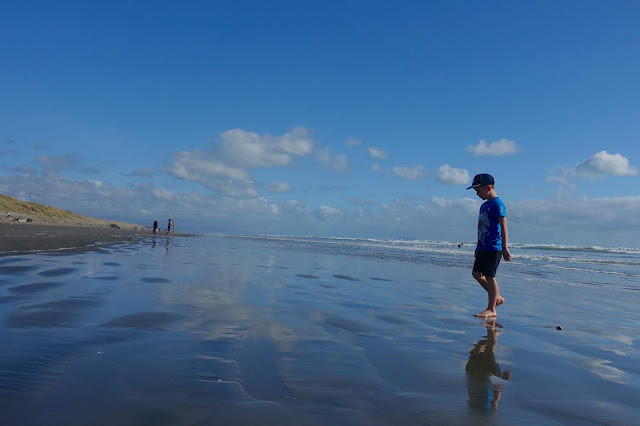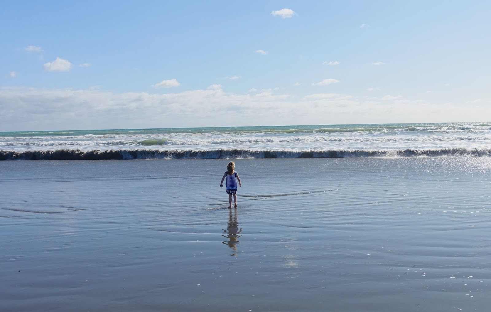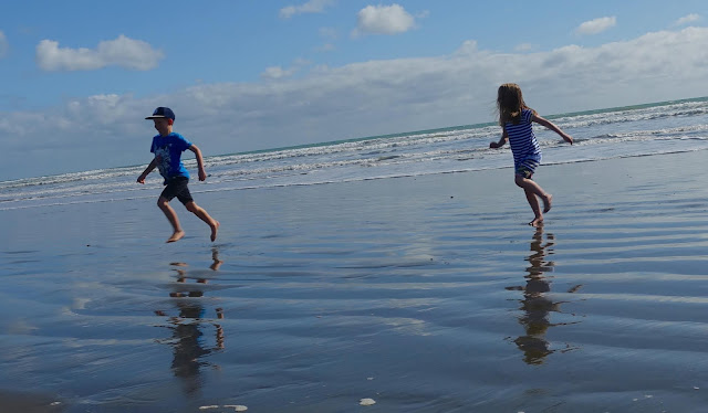This is a bit of an unheralded beach in New Zealand. In all my driving around the country in previous jobs I’ve never bothered to check it out. I was put off doing so by the unimaginative sign which drivers had to endure for years as we entered the town: ‘Foxton: the Fox Town’. Yes, I know – it is hard to believe. But this is now the second time we’ve been to the beach with the grandchildren. Watching them run in and out of the waves, while enjoying vistas of both beach and water stretching to the horizon makes for quite a sight (even if the sun, once again, is at the wrong angle for photos!).