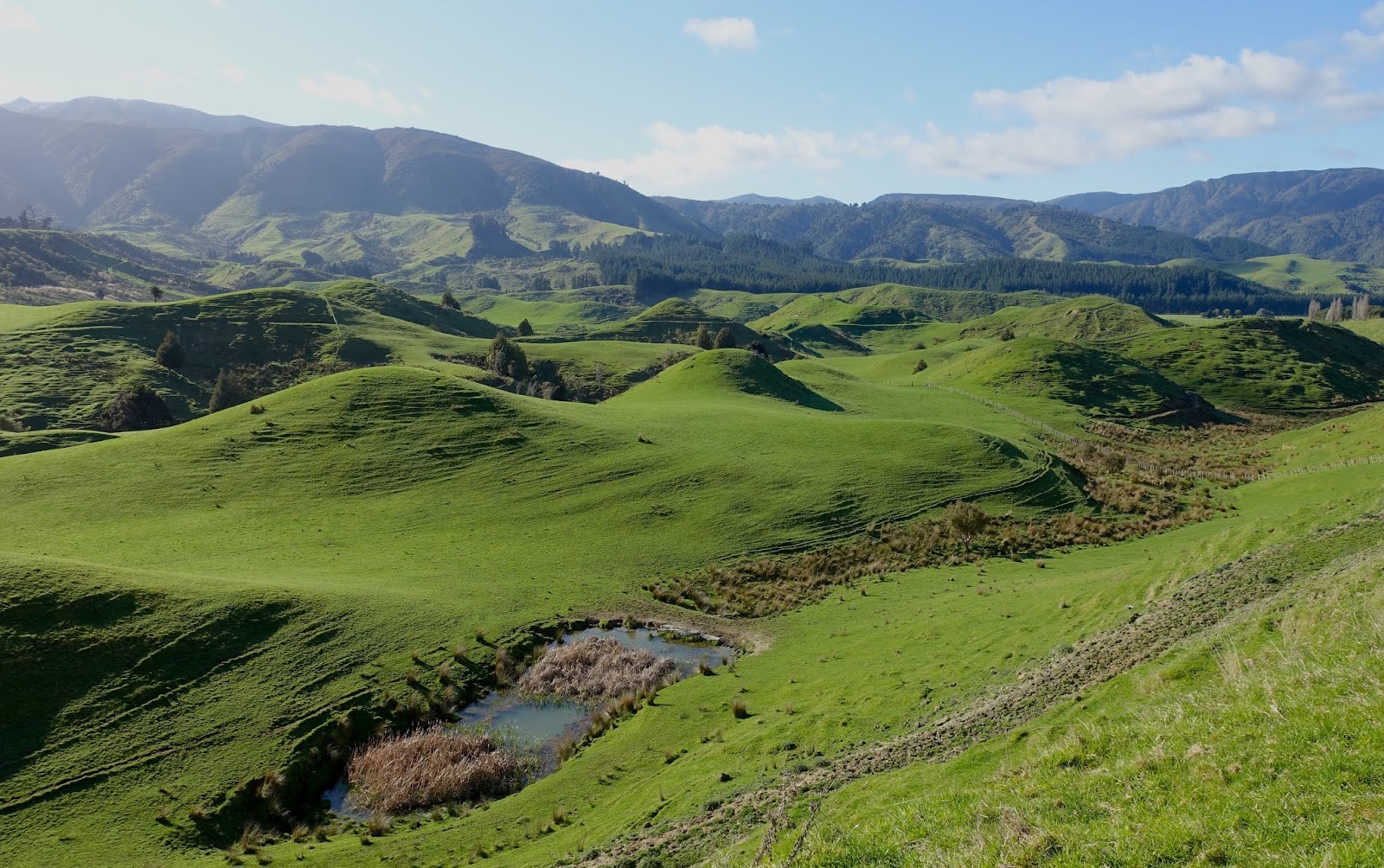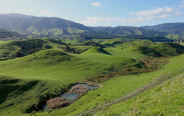 On a spectacular spring morning we drove up behind Palmerston North into the Ruahine range which form a central mountain spine in New Zealand’s lower North Island. Not exactly Himalayan and not exactly photo-able (as the sun was rising above them) – but I did my best. Oh, how I miss New Zealand’s velvet green farmland when I am overseas…