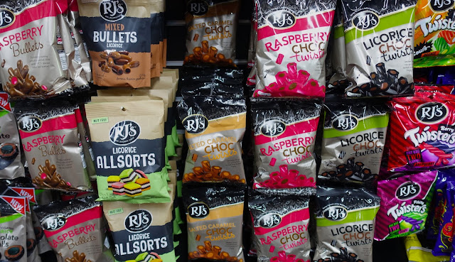 … but the city redeemed itself by being the home of the RJ’s Licorice factory shop. Suddenly, our trip became about mountain, river, licorice and ocean. I had known the factory was in the town, but I had never stopped for a look – or a taste. The queue in the little shop was long and became a bit like a roundabout. The prices were cheap, the options were varied and we went round the roundabout more than once.