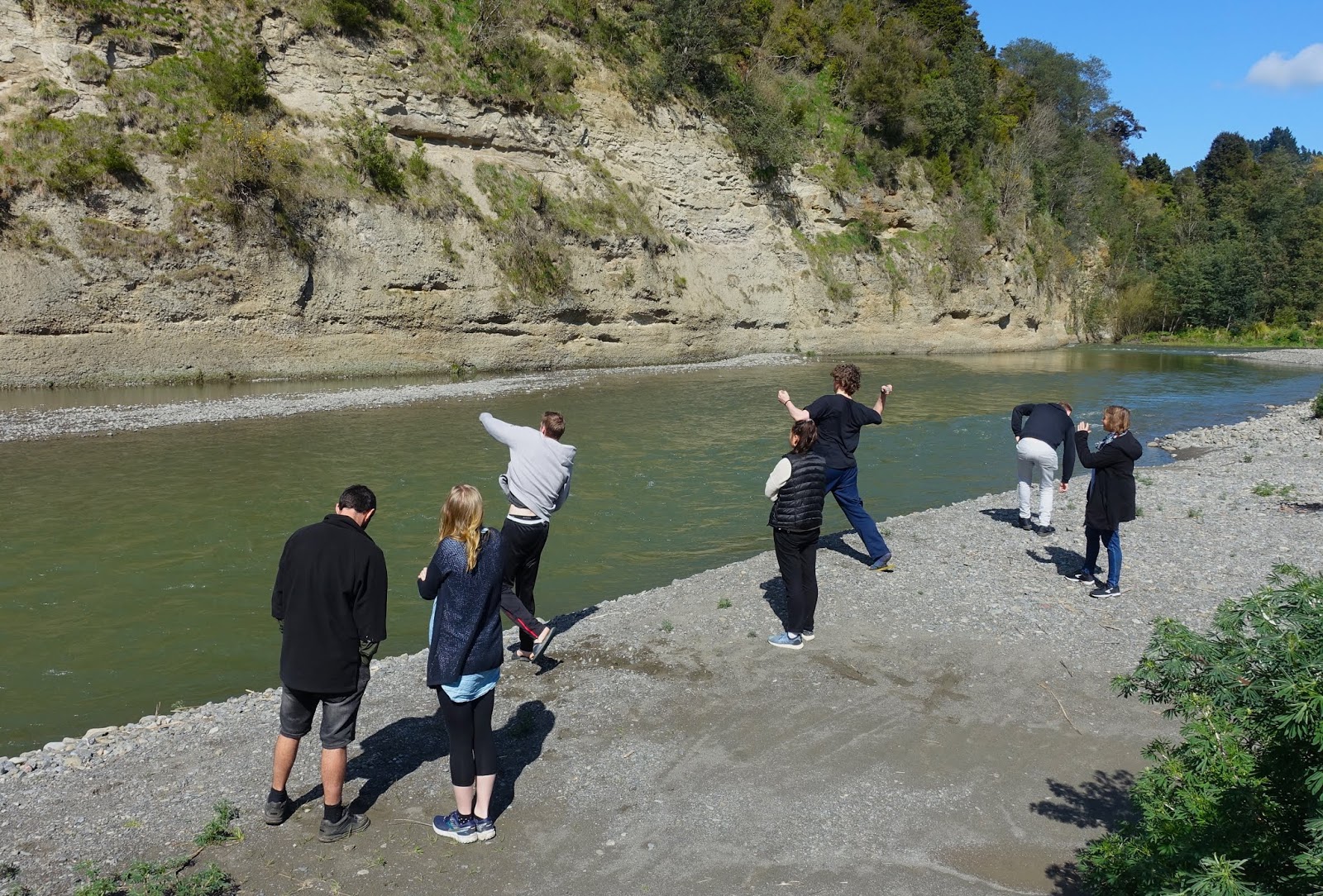 This was new to me. I’d never driven this road before, as we followed alongside the Pohangina river on its way down to meet the Manawatu river just east of Palmerston North. We stopped here and there, both to admire the beauty of the surroundings and to indulge in some irresistibly competitive stone-throwing with my sons.