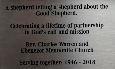 You can go see it for yourself! Ebenezer Mennonite Church in Bluffton, Ohio. ‘A shepherd telling a shepherd about the Good Shepherd’. Dad did this for more than 60 years. This was his purpose in life. He was the first shepherd-feeder to whom I ever listened. When I trained to be a shepherd myself he was the reference point for the shepherd-carer and has remained at that point to this day. In fact, I experienced his shepherding myself because he loved me as his own. His absence, as is the case with my own father, as a shepherd-pray-er and a shepherd-cheerleader has left a big gap in my life.